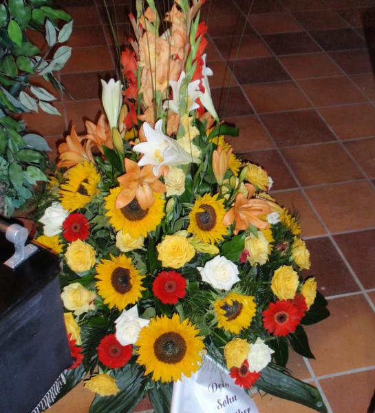 Trauerkränze & Gestecke in ROT GELB ORANGE
